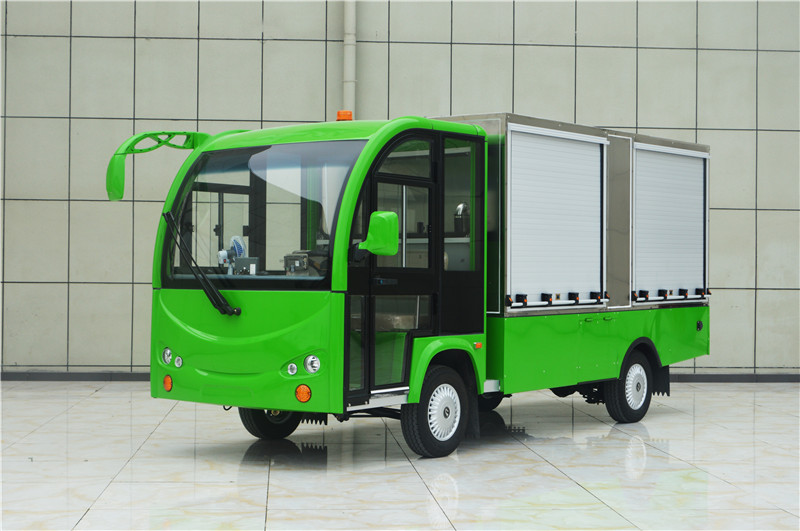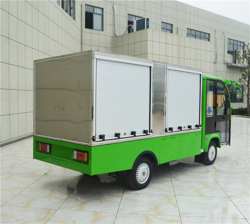 綠色送餐車_不銹鋼箱體內(nèi)分層帶卷閘門